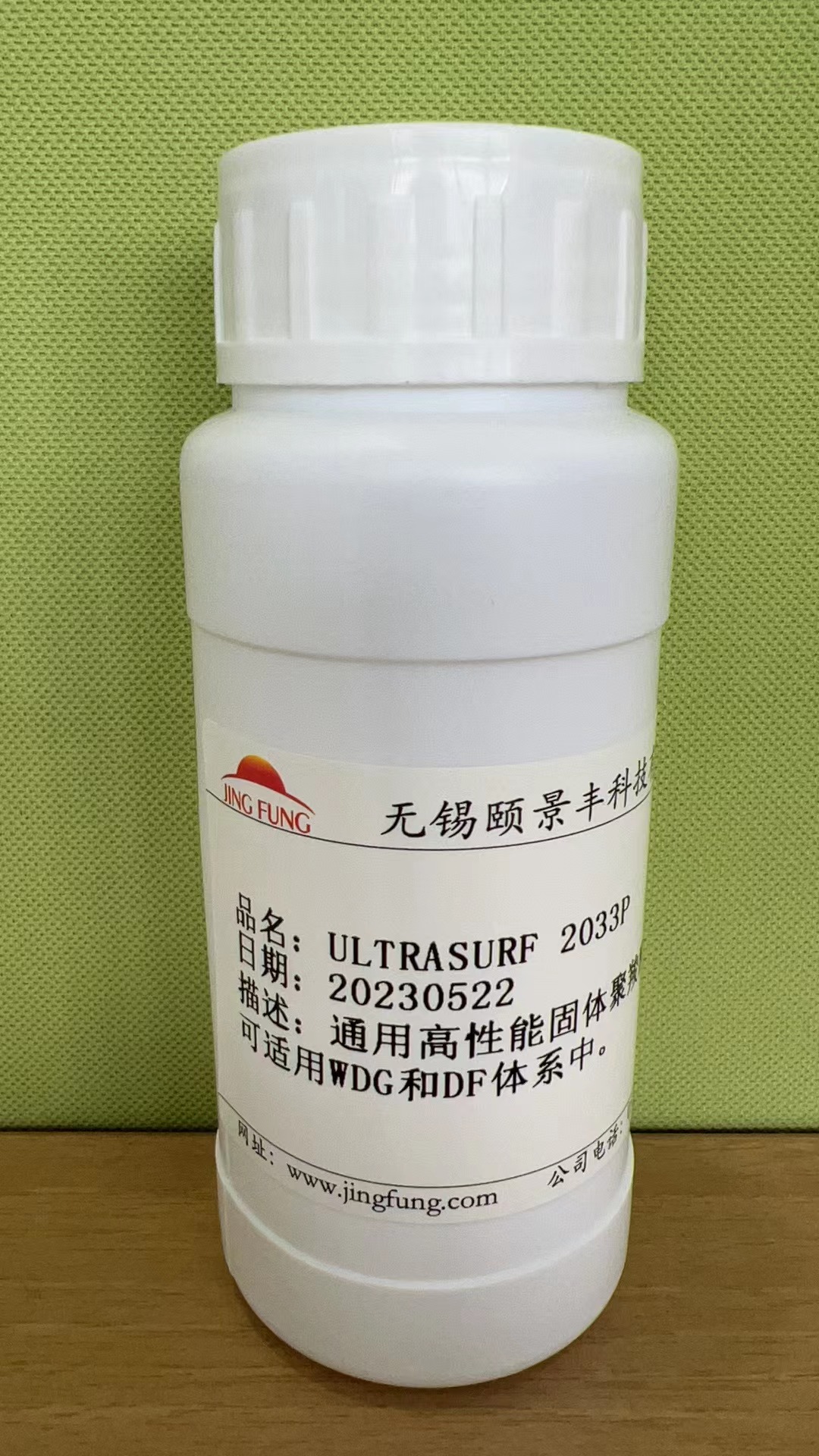 The polycarboxylate with low foaming wetting agent has good versatility and fast disintegration, and can be used in SC, WDG and DF systems.